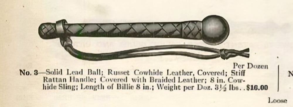 Inspired by early 20th-century catalog designs, this blackjack recreates the distinctive look and feel of the original “No. 3” pattern—featuring a rattan-style wrapped handle, hand-covered leather head, and traditional wrist thong for secure carry.
