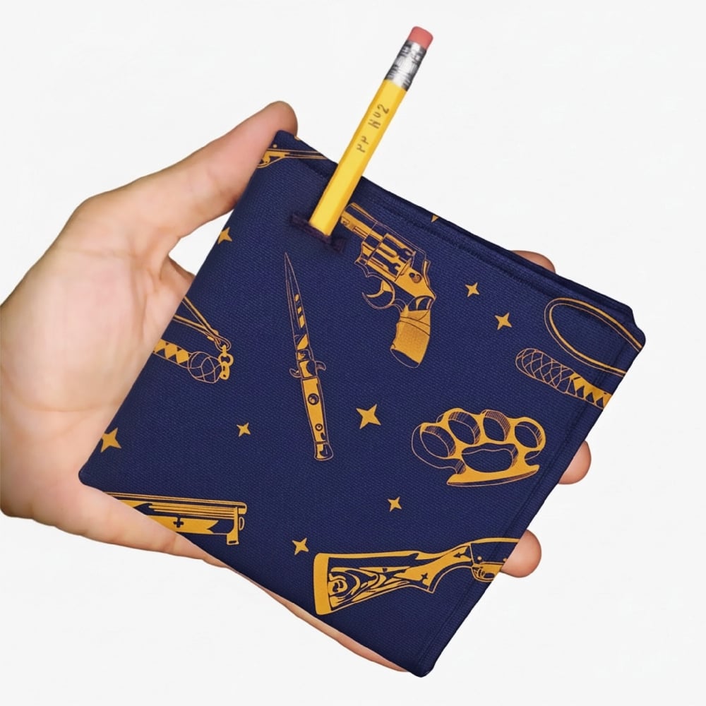 Meet the Shankey, the handkerchief with a secret. At first glance, it’s an 8" x 8" pocket square—sleek, soft, and printed with our signature outlaw motifs. But hidden inside is the real trick: an internal twill sheath perfectly sized for your Pencil Pusher (or any similar impact-safe tool you carry).
